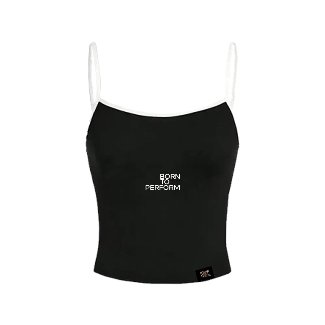 Czarny top. Komfortowy, dopasowany top, idealny na salę ćwiczeń a także do codziennej stylizacji. Białe ramiączka dodają modnego sportowego charakteru.